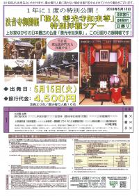 1ǯ¤Ë1ÅÙ¤ÎÆÃÊ̸ø³«¡ª Ë¡²»»û¡ØÈëÊ© Á±¸÷»ûÇ¡Í躡ٸ泫Ģ¡¡ÆÃÊÌÇҴѥĥ¢¡¼¡ª ¾å¿ù¸¬¿®¸ø¤¬¿¼¤¯¿®¶Ä¤·¤¿¤È¤¤¤ï¤ì¤ë¡ØÁ±¸÷»ûÇ¡Í躡١£ ǯ¤Ë°ìÅÙ¡¢°ìÆü¸Â¤ê¤ÎÆÃÊ̸ø³«¡ª ÊÆÂôÈͼç¤ÎÊîÄó»û¤Ç¤¢¤ëË¡²»»û¤Ë¤Æ¡¢°ìÆü¸Â¤ê¸æ³«Ä¢¤µ¤ì¤ë ¡ÖÈëÊ© Á±¸÷»ûÇ¡Í躡פȡ¢¾å¿ù¸¬¿®¸ø¡¦ÊÆÂôÈͽéÂåÈÍ¼ç ·Ê¾¡¸ø¤«¤é11Âå ÀÆÄê¸ø¤Þ¤Ç¤ÎÉÀ²°¤¬Î©¤Áʤ־å¿ù²ÈÉÀ½ê¤Ê¤É¡¢ ¾å¿ù²È¤æ¤«¤ê¤ÎÃϤò¤á¤°¤ê¤Þ¤¹¡£ ¡Ú½ÐȯÆü¡Û¡¡Ê¿À®30ǯ 5·î15Æü¡Ê²Ð¡Ë¡ÊÆüµ¢¤ê¡Ë ¡ÚÂå¡¡¶â¡Û¡¡4,500±ß¡ÊÀǹþ¡Ë ¡Ú½¸¡¡¹ç¡Û¡¡JRÊÆÂô±Ø ¡Ê»³·Á¸©ÊÆÂô»Ô±ØÁ°°ìÃúÌÜ1-43¡Ë ¡Úź¾è°÷¡Û¡¡¤¢¤ê¡ÊÊÆÂô´Ñ¸÷¥³¥ó¥Ù¥ó¥·¥ç¥ó¶¨²ñ¥¹¥¿¥Ã¥Õ¡Ë ¡Ú°Ü¡¡Æ°¡Û¡¡ÂßÀڥХ¹ ¡ÚÄê¡¡°÷¡Û¡¡20̾¡ÊºÇ¾¯ºÅ¹Ô¿Í°÷ 16̾¡Ë ¡Ú¿©¡¡»ö¡Û¡¡¤Ä¤¤Þ¤»¤ó ¡Ú¹Ô¡¡Äø¡Û ¡¡ 9:20º¢¡¡¡¡JRÊÆÂô±Ø ½¸¹ç¡¿½Ðȯ¡¡¡Ê½Ðȯ¤Ï9:30º¢¡Ë ¡¡¡¡¡¡¡¡ ¡¡¡¡ ¡¡¡¡¡¡¡¡¡¡¡¡¡¡¡¡¡ Ë¡²»»û ÆÃÊ̸泫Ģ¡ØÁ±¸÷»ûÇ¡Í躡١¡ÇÒ´Ñ ¡¡¡¡¡¡¡¡¡¡¡¡¡¡¡¡¡¡¢¨ÅöÆü¤Î¸æ³«Ä¢¤Ï°ì»þ´Ö¤Î¤ß¤È¤Ê¤ê¡¢ ¡¡¡¡¡¡¡¡¡¡¡¡¡¡¡¡¡¡¡¡°ìÈ̤ÎÊý¤ÎÇҴѤâͽÁÛ¤µ¤ì¤ë¤¿¤á¡¢ ¡¡¡¡¡¡¡¡¡¡¡¡¡¡¡¡¡¡¡¡Ã»»þ´Ö¤ÎÇҴѤȤʤê¤Þ¤¹¡£ ¡¡¡¡¡¡¡¡¡¡¡¡¡¡¡¡¡¡¡¡Í½¤á¤´Î»¾µ¤¯¤À¤µ¤¤¡£ ¡¡¡¡¡¡¡¡¡¡¡¡¡¡¡¡¢ ¾å¿ù²ÈÉÀ½ê ÇÒ´Ñ ¡¡¡¡¡¡¡¡¡¡¡¡¡¡¡¡£ ¾å¿ù¾ë»Ë±ñ¤Ë¤Æ¼«Í³Ãë¿©¡¦¤ªÇ㤤¤â¤Î ¡¡¡¡¡¡¡¡¡¡¡¡¡¡¡¡¤ ¾å¿ù¿À¼Ò¡¦¾å¿ùÇîʪ´Û ¸«³Ø ¡¡¡¡¡¡¡¡¡¡¡¡¡¡¡¡¡¡¡Ê´Ñ¸÷¥¬¥¤¥É¤Ë¤è¤ë²òÀâ¤Ä¤¡Ë ¡¡14:30º¢¡¡¡¡JRÊÆÂô±Ø ÅþÃå¡¿²ò»¶ ¡¡¢¨Æ»¤Î±ØÊÆÂô ȯÃå¤Î¥³¡¼¥¹¤â¤´¤¶¤¤¤Þ¤¹¡£ ¡¡¡Ú»²¡¡¹Í¡Û¡¡ ¡¡¢¨´ØÅìÊýÌ̤è¤ê¤ª±Û¤·¤Î¤ªµÒÍÍ ¡¡¡¡»³·Á¿·´´Àþ¤Ä¤Ð¤µ123¹æ¡ÊÅìµþ±Ø 7¡§12 ¢ª ÊÆÂô±Ø 9¡§24¡Ë ¡¡¢¨»³·ÁÊýÌ̤è¤ê¤ª±Û¤·¤Î¤ªµÒÍÍ ¡¡¡¡±ü±©ËÜÀþ¡Ê»³·Á±Ø 8:15 ¢ª ÊÆÂô±Ø 9:06¡Ë ¥×¥é¥ó Ë¡²»»û¡ØÈëÊ© Á±¸÷»ûÇ¡Í躡ٸ泫Ģ¡¡ÆÃÊÌÇҴѥĥ¢¡¼¡ÚJRÊÆÂô±Ø ½Ðȯ¡Û ÈÎÇä´ü´Ö 2018/05/15 ¡Á 2018/05/15 ½¸¹ç¾ì½ê ÊÆÂô»Ô±ØÁ°°ìÃúÌÜ1-43 ¼è°·¡¦¼Â»Ü²ñ¼Ò °ìÈ̼ÒÃÄË¡¿Í ÊÆÂô´Ñ¸÷¥³¥ó¥Ù¥ó¥·¥ç¥ó¶¨²ñ ÎÁ¶â ¤ª¤Ò¤È¤êÍͤ¢¤¿¤ê 4,500 ±ß(Àǹþ)¡Á ¥¤¥ó¥Õ¥©¥á¡¼¥·¥ç¥ó ¡ÁÁ±¸÷»ûÇ¡Í躤Ⱦå¿ù²È¤Ë¤Ä¤¤¤Æ¡Á Á±¸÷»ûÇ¡Í躤ϡ¢¥¤¥ó¥É¤è¤êÉ´ºÑ¤ò·Ð¤Æ552ǯ¤ÎÊ©¶µÅÁÍè¤È¤È¤â¤Ë¶ÖÌÀÅ·¹Ä¤Ë¸¥¤¸¤é¤ì¤¿²æ¹ñºÇ¸Å¤ÎÊ©Áü¤È¤µ¤ì¤ë»°¹ñÅÁÍè¤ÎÈëÊ©¤Ç¤¢¤ë¡£1551ǯ ÀîÃæÅç¤ÎÀ襤¤ÎÀÞ¡¢¿®½£ÃæÌî¾ë¼ç¹âÍüÀ¯Í꤬Àï¹ñ¤Îʼ²Ð¤òÈò¤±¤ë¤¿¤á¡¢¿®Ç»Á±¸÷»û¤Î¤´Ëܺ¤ò¾å¿ù¸¬¿®¸ø¤ËÊô¤¸¤¿¡£¸¬¿®¸ø¤Ï½ÕÆü»³¤ËÇ¡ÍèÆ²¤ò·ú¤Æ¤Æ¤´Ëܺ¤òº©¤í¤ËÊô㫤¹¤ë¤È¤È¤â¤Ë¿¼¤¯Âº¿®¤·¸·½Å¤Ë¼é¸î¤·¤¿¡£1601ǯ ¾å¿ù²È¤Î¹ñÂØ¤¨¤Ëȼ¤¤Á±¸÷»ûÇ¡Í躤âÊÆÂô¤Ë°Ü¤µ¤ì¡¢ÆóÂåÌÜ ·Ê¾¡¸ø¤¬ÊÆÂô¾ëËܴݤ˸¬¿®¸ø¤òã«¤ë¸æÆ²¤ò·ú¤Æ¡¢¸æÆ²ËÜŤÎÃæ±û¤Ë¸¬¿®¸ø¤Î¤´Âº³¼¤ò¡¢±¦¤ËÁ±¸÷»ûÇ¡Í躡¢º¸¤ËÅ¥ÂÈûº»Ìçŷº¤ò°ÂÃÖ¤·¤¿¡£ÌÀ¼£¤ËÆþ¤êË¡²»»û¤¬ÎòÂåÈÍ¼ç¸æÉÀ½ê¤Î¤¢¤ë¸½ºßÃϤ˰Üž¤·¡¢ÌÀ¼£¶åǯ ËÜ´Ý¤Î¸æÆ²¤¬²òÂΤµ¤ì¤Æ¸¬¿®¸ø¤Î¤´°ä³¼¤¬¸½ºßÃϡʸæÉÀ½ê¡Ë¤ËÁ«ºÂ¤µ¤ì¤¿ºÝ¡¢Á±¸÷»ûÇ¡Í躡¢Å¥ÂÈûº»Ìçŷº¤ÏË¡²»»û¤Ë°Ü¤µ¤ìÊô°Â¤µ¤ì¤¿¡£Ëèǯ5·î15Æü¤Ë¤Ï¡¢¸æ³«Ä¢Ë¡³Úµ§´êº×¤ò¸·½¤¤·¡¢À¤³¦Ê¿Ï¡¢Ëü̱©ºÒ¤È½ô´êÀ®½¢¤òµ§´ê¤·¤Æ¤¤¤ë¡£ ¡Á¤ª¿½¹þ¤ß¤Ë¤¢¤¿¤Ã¤Æ¡Á ¡¦Î¹¹ÔÂå¶â¤Ë´Þ¤Þ¤ì¤ë¤â¤Î¡§¥Ð¥¹Âå¡¢ÇÒ´Ñ¡¦Æþ´ÛÎÁ¡¢Î¹¹ÔÊݸ±Âå¤Ê¤É¡£ ¡¦½¸¹ç¾ì½ê¡ÊJRÊÆÂô±Ø¡Ë¤Þ¤Ç¤ÎιÈñ¤Ïι¹ÔÂå¶â¤Ë´Þ¤Þ¤ì¤Æ¤ª¤ê¤Þ¤»¤ó¡£ ¡¦Ãë¿©¤Ï´Þ¤Þ¤ì¤Æ¤ª¤ê¤Þ¤»¤ó¡£¾å¿ù¾ë»Ë±ñ¡Ê¥ì¥¹¥È¥é¥ó¡¦¥é¡¼¥á¥óʤ¢¤ê¡Ë¤Ë¤Æ¼«Í³Ãë¿©¤È¤Ê¤ê¤Þ¤¹¡£ ¡¦¤ª¿½¹þ¤ß¤¬ºÇ¾¯ºÅ¹Ô¿Í°÷¤ËËþ¤¿¤Ê¤¤¾ì¹ç¤Ï¡¢Ãæ»ß¤µ¤»¤ÆÄº¤¯¾ì¹ç¤¬¤´¤¶¤¤¤Þ¤¹¡£ ¡¦¤´Í½Ìó¤Ï½ÐȯÆü¤Î7ÆüÁ°¤Þ¤Ç¤È¤Ê¤ê¤Þ¤¹¡£Î¹¹ÔÂå¶â¤Ï¡¢»öÁ°¤Ë»ØÄꤹ¤ë¸ýºÂ¤Ë¤ª¿¶¹þ¤ßĺ¤¯·Á¤È¤Ê¤ê¤Þ¤¹¡£ ¡¦ºÅ¹Ô¤Î·èÄê¤Ï¡¢½ÐȯÆü¤Î7ÆüÁ°¤Þ¤Ç¤Ë¤´Ï¢Íí¤ò¤µ¤»¤Æ¤¤¤¿¤À¤¤Þ¤¹¡£ ¡¦¤³¤Îι¹Ô¤Ï¡Ê°ì¼Ò¡ËÊÆÂô´Ñ¸÷¥³¥ó¥Ù¥ó¥·¥ç¥ó¶¨²ñ¤¬´ë²è¡¦¼Â»Ü¤¹¤ëι¹Ô¤Ç¤¢¤ê¡¢¤³¤Îι¹Ô¤Ë»²²Ã¤µ¤ì¤ë¤ªµÒÍͤÏÊ罸·¿´ë²èι¹Ô·ÀÌó¤òÄù·ë¤¹¤ë¤³¤È¤Ë¤Ê¤ê¤Þ¤¹¡£¤½¤Î¾¤Îι¹Ô¾ò·ï¤ÏÊÌÅÓ¤ªÅϤ·¤¹¤ëι¹Ô¾ò·ï½ñÌÌ¡¢·ÀÌó½ñÌÌ¡¢³ÎÄê½ñÌ̡ʺǽªÎ¹¹ÔÀâÌÀ½ñÌ̡˵ڤÓÅö¼Òι¹Ô¶ÈÌó´¾Ê罸·¿´ë²èι¹Ô·ÀÌó¤ÎÉô¤Ë¤è¤ê¤Þ¤¹¡£ ¡Áι¹Ô´ë²è¡¦¼Â»Ü¡Á ¡Ú°ìÈ̼ÒÃÄË¡¿Í ÊÆÂô´Ñ¸÷¥³¥ó¥Ù¥