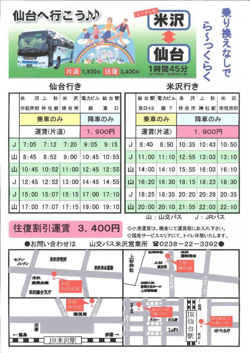 お問い合わせは 山交バス米沢営業所