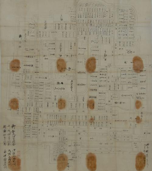 山形城は延文2年(1357)斯波兼頼によって築城が始められたといわれている。今年で650年の節目を迎えている。その後最上義光による大規模な拡張と整備がなされたようで、それらの城下を描いたいくつかの城絵図が残されている。現存する山形城下絵図の中で最も古いといわれているものは、最上家が改易された際幕府の上使に差し出したとされる、山形県立図書館所蔵の「最上家在城諸家中町割図(以下本稿では便宜的に「元和城絵図」(注1)とする)」で、元和8年(1622)頃の山形城下を描いたものとされている。