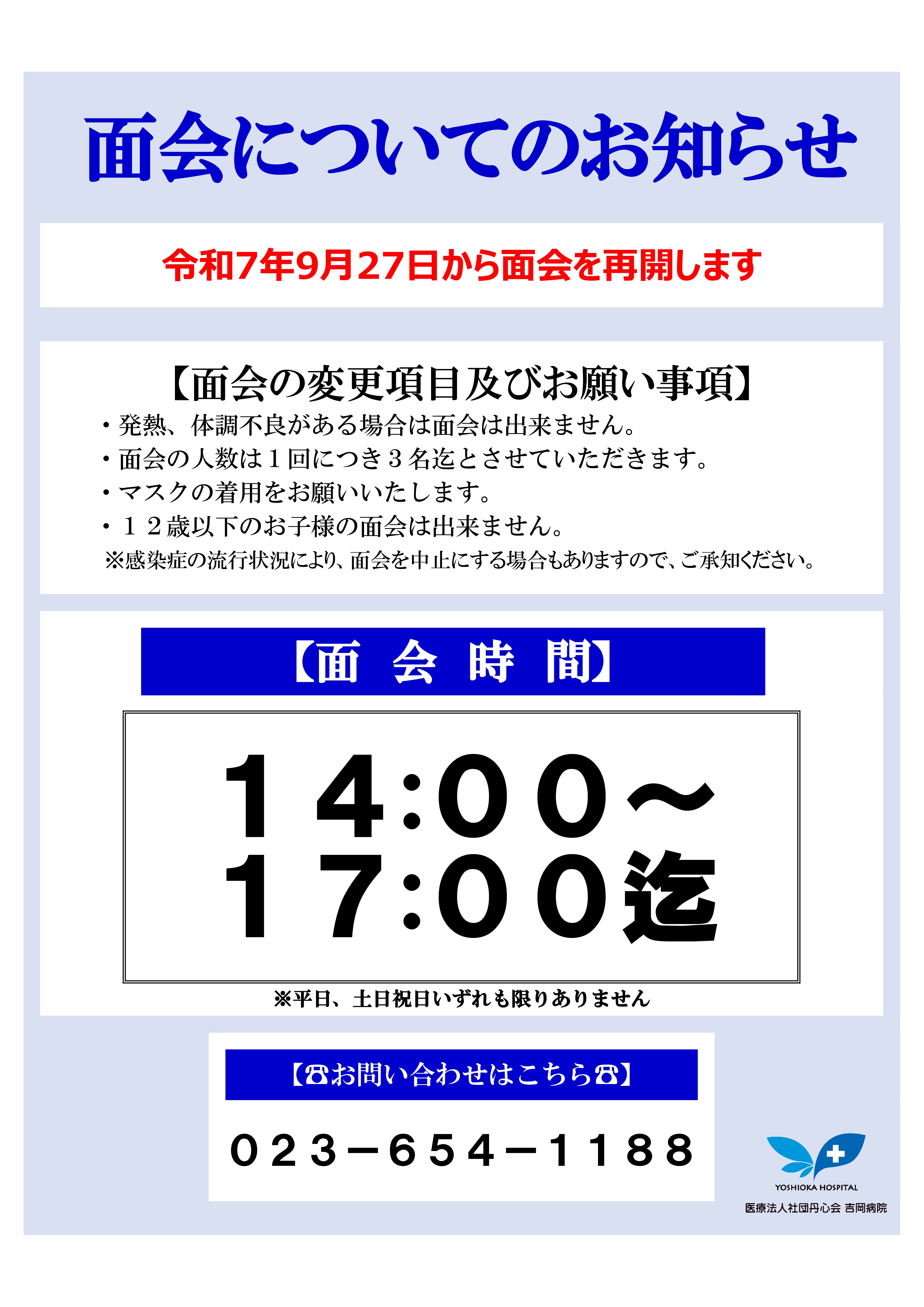 2025年8月27日(水)より面会を再開いたします。