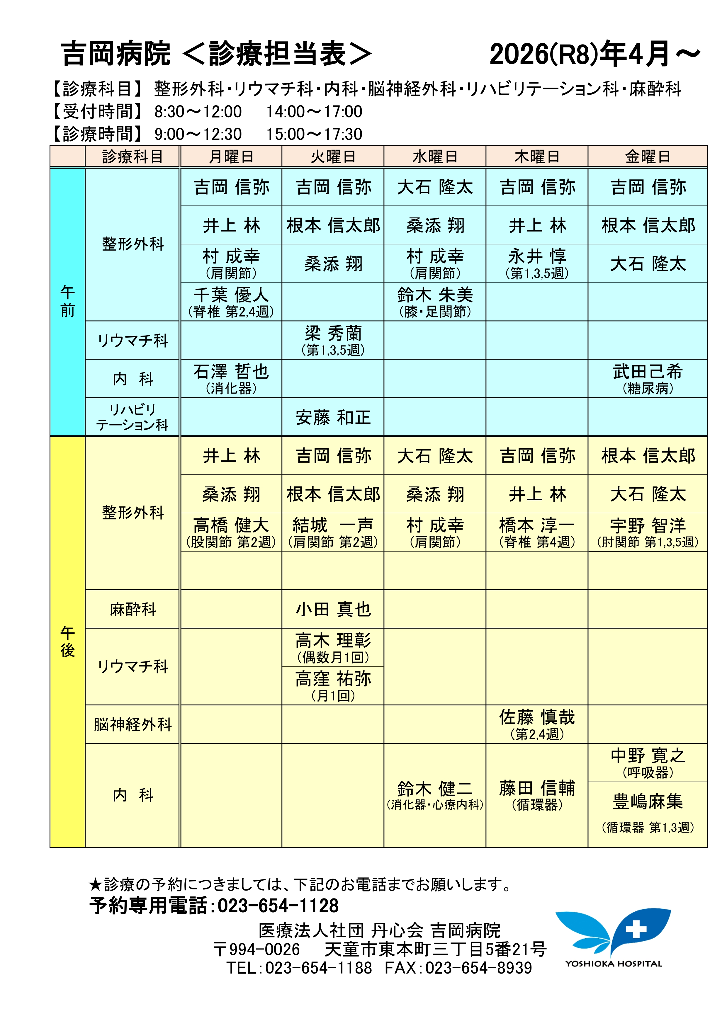 ✿ 再来予約・予約変更を希望される患者様 ⇒ 023-654-1128