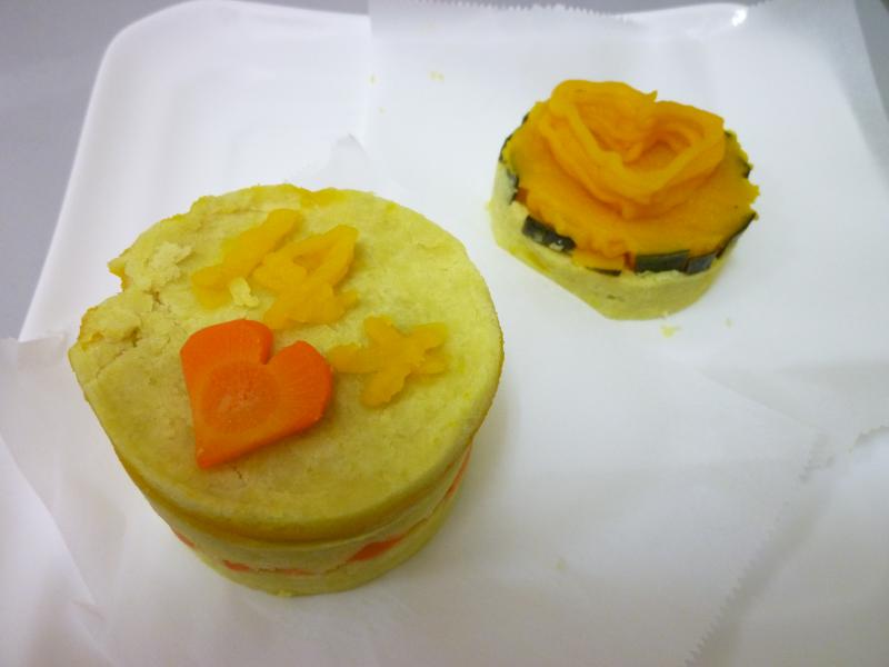 ▼今日は、手づくりの野菜のケーキで誕生会です