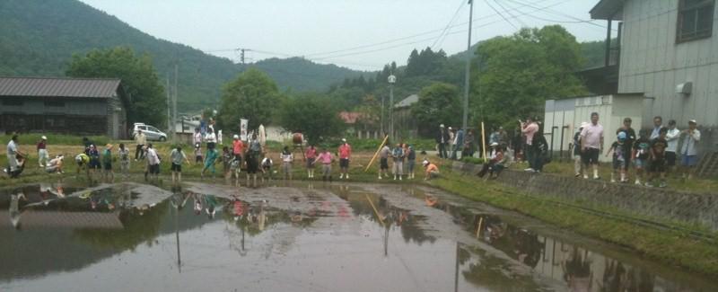 ▼米鶴酒造の恒例行事、「田植え祭り」