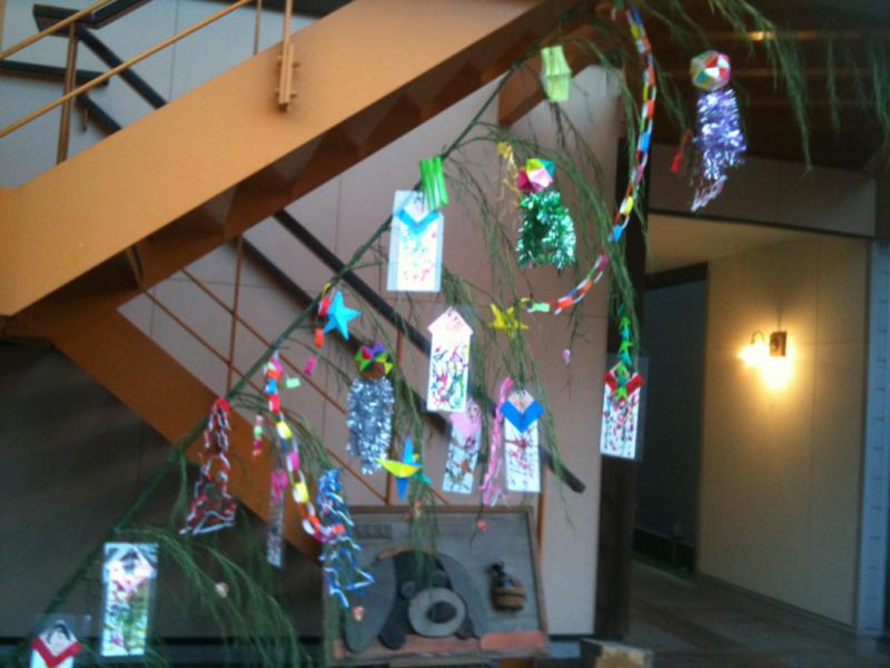 今日は、商店会の人と七夕の準備をしました