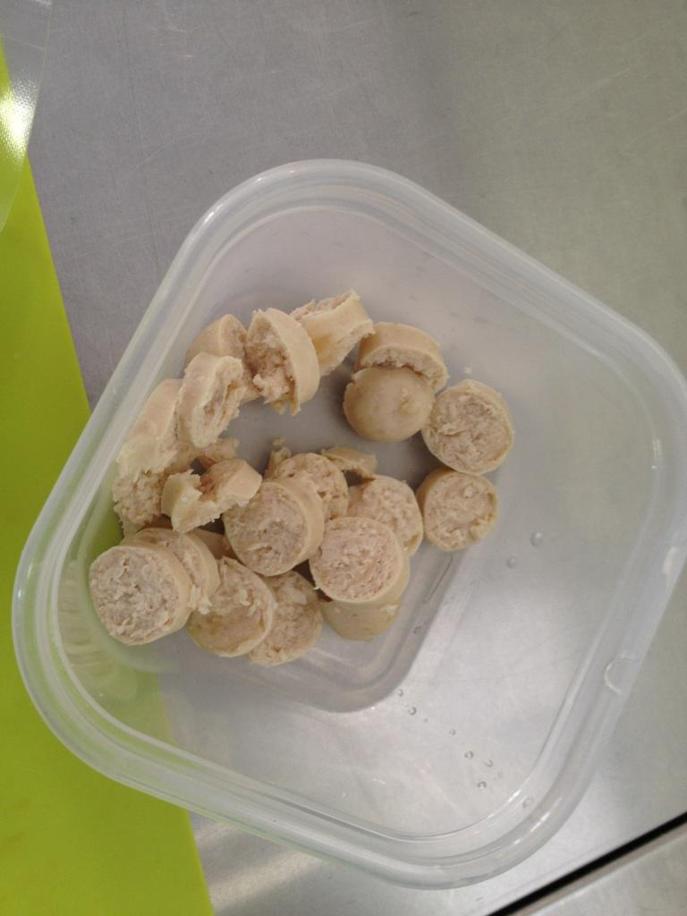 ソーセージ職人が作った、無添加の鶏肉のソーセージと、わんこのサラダのミックスです。