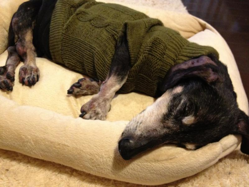 今日は、寒いので新しいセーターを着せました。