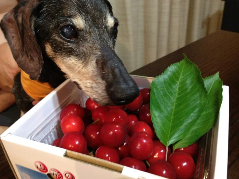 数日前に二年半前に亡くなった愛犬ニールの仏壇に誰かが御供えしてくれたさくらんぼがありました。