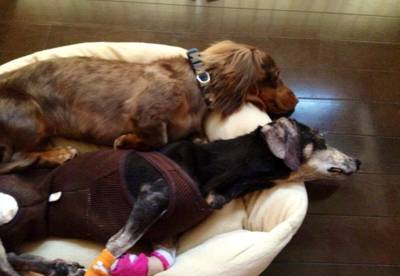 ベルは高齢で痩せていますが、チョコはベルよりも小さいのです。