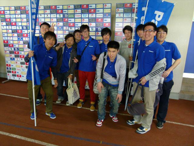 ハーフタイムではパナソニックののぼりを振りながら、観客にアピール!