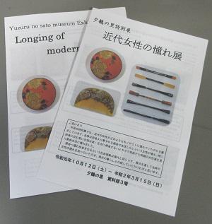 無事に展示の準備を終えることができました。 「近代女性の憧れ展」は明日から開催します。 大正と昭和の女性の憧れを是非、ご覧ください! 夕鶴の里特別展2019 「近代女性の憧れ展」 期間:令和元10月12日(土)〜令和2年3月15日(日) 場所:夕鶴の里 特別展コーナー 開館時間:9:00〜16:30 休館日:毎週月曜日(祝日の場合は開館) 年末年始(12月29日〜1月3日) 入場料:大人330円(270円)、子供110円(50円) ※入館料に含まれています。 ( )は団体料金(15名以上) お問合せ:南陽市夕鶴の里 Tel.0238−47−5800 Fax.0238−47−5802 E-mail:yuzuru@city.nanyo.yamagata.jp |