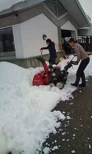 この日は県外のお客様が多く来館され、除雪機での雪かきをめずら