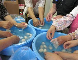 真綿づくりでは、作業も手早く進んでいました!