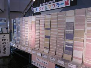 今年は、真綿を赤じそ、よもぎで染色し、個性あふれる織り方で