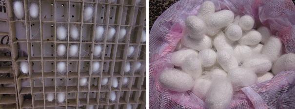 夕鶴の里で飼育した蚕の繭は、