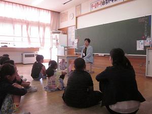 児童に民話を語りました。
