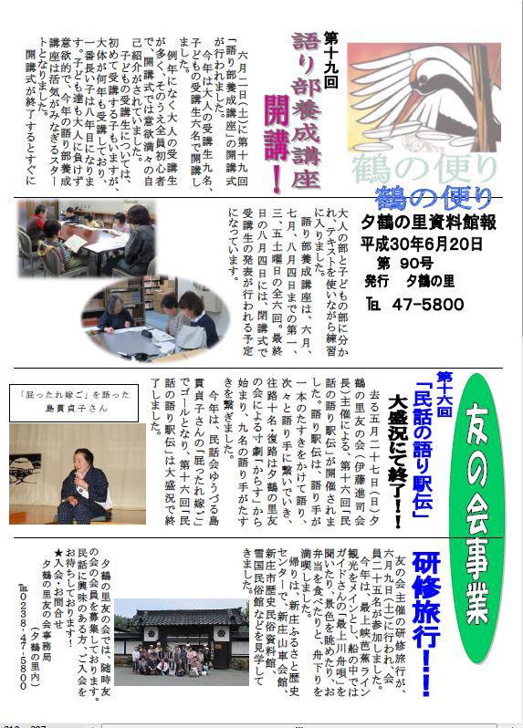 夕鶴の里、館報第90号(6月20日)を発行しました。