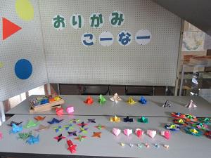 折り紙を折って展示スペースを設置しました。ぜひご覧ください。