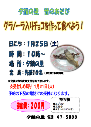 夕鶴の里 昔のあそび(第4回)を下記の通り開催します。