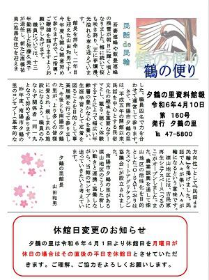 夕鶴の里館報第160号を発行いたしました。