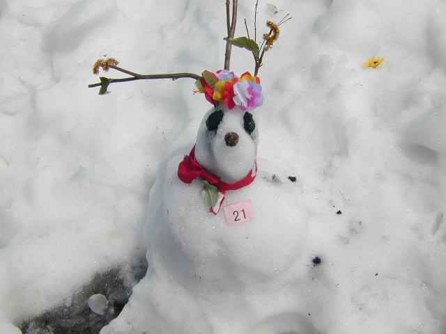 ▼【ゆきだるまギャラリー】ちっちゃいゆきだるまと犬みたいなシカ