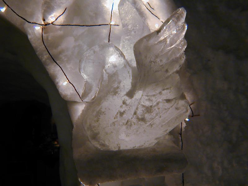 スワンの氷の彫刻。こちらは当ホテル厨房の菅野君の作品。菅野君は晩餐会のキーマン、そしてなくてはならない人なのです。お城の設計・施工・氷の彫刻・お料理作りまで一貫して行うクリエーターなのです。本当センスの良さに関心しております。今年もお願い致します。