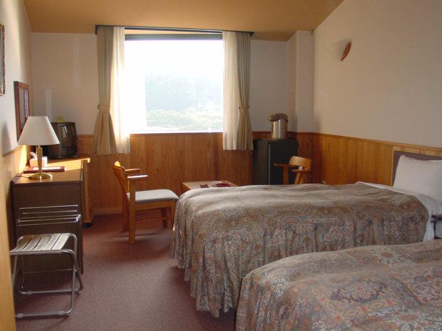 1階は和室で2階が洋室ツインとなっております。お部屋は9室。すべて同じタイプとなっております。こちらは最大で3名様までご宿泊可能です。窓は小さいけれど