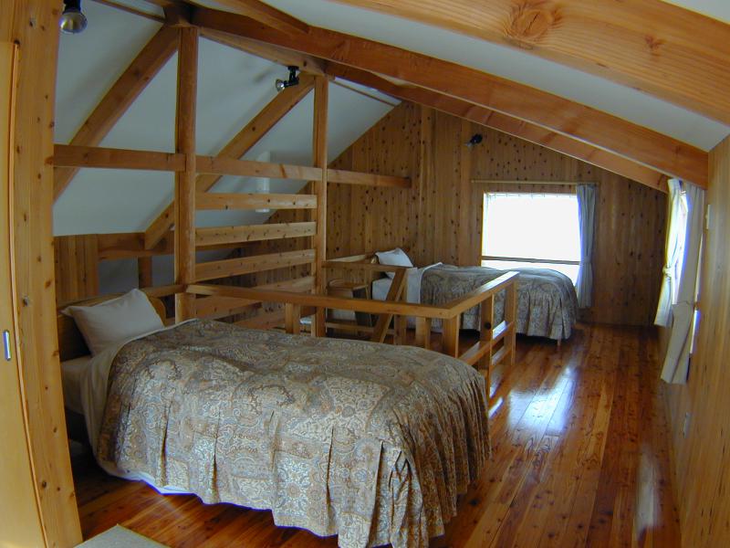 コテージの中は吹き抜けとなっております。2階はこんな感じです。