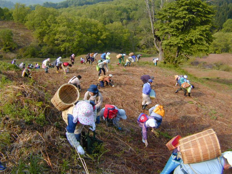 今までの会話は一斉になくなり、「プチ・プチ・プチ・プチ」とわらびを採る音だけが漂っています。プチ・プチ・プチ・プチ.....