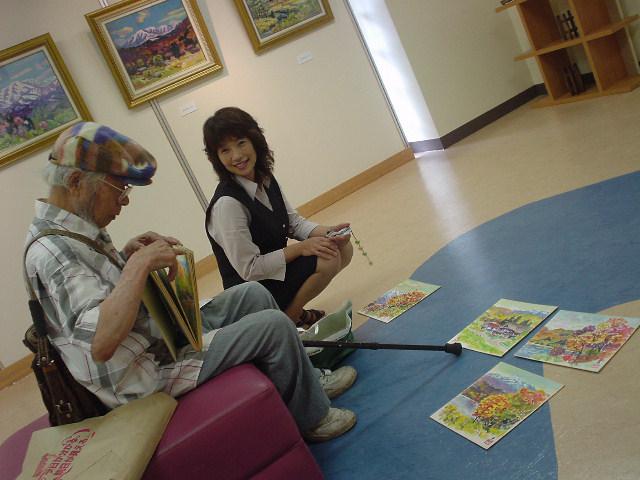 貴重な絵をおしげもなくバサッ、バサッっと...床にて展示会が始まりました。