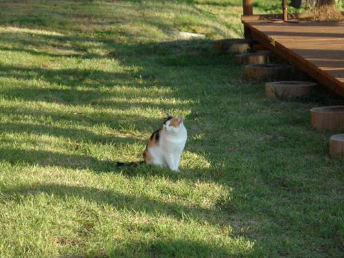 ホテルの外では中津川のアイドル三毛が日向ぼっこ♪