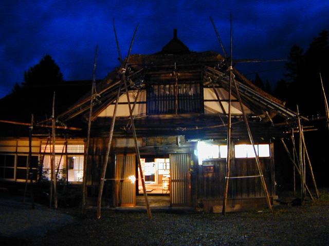 昼・夜の2回公演となりました。夜はかやぶき民家もライトアップ。