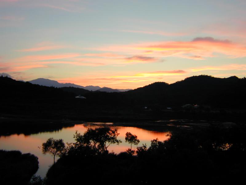 中津川白川ダム湖畔では運が良ければこんな風景見れます。奥の山は飯豊山
