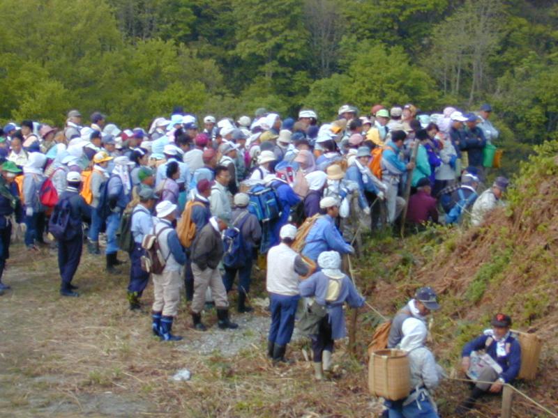 皆さん観光わらび園という所は御存知ですか?ここ飯豊町中津川地区には5ヶ所あります。殆どのわらび園は朝7:00〜11:00の開園。福島・宮城・新潟などの近県から朝早い時間の開園にもかかわらずたくさんのお客様が起こしになります。時期は5月中旬〜7月初旬。(開園日は天候に左右されます)料金はお一人様2000円。これがその開園前の様子。通常1わらび園に200〜300名は入ります。おおい所では500〜600名という事も。すごい...