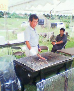 売店では米沢牛の串焼きを売ってます。その外にヤマメの塩焼き、フランクフルト、いか焼き、玉こんなどを売ってま〜す。