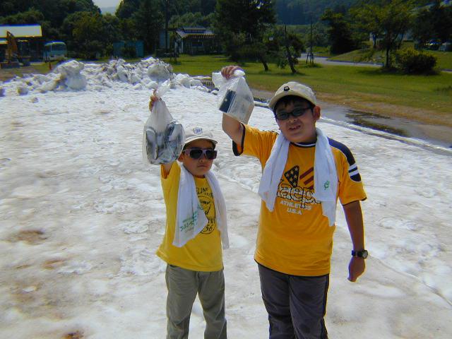 先月30日ここ中津川で雪を使った「SNOWえっぐフェスティバル」というお祭りが開催されました。会場は白川湖岸公園。イベントの中で雪の中で宝物を探しというプログラムがありました。当日出てこなかったお宝が、雪解けによって今ざくざくと出てます!まだ雪も残ってます。夏休み、雪で遊べるのはここだけ!まだ残っているよ。