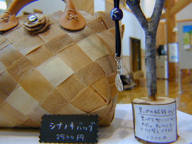 飯豊町中津川地区にある「源流の森センター」の入口には手作りコーナーがあります。こんな素敵なバックもあったりして。使い込む程に深みが出そう。