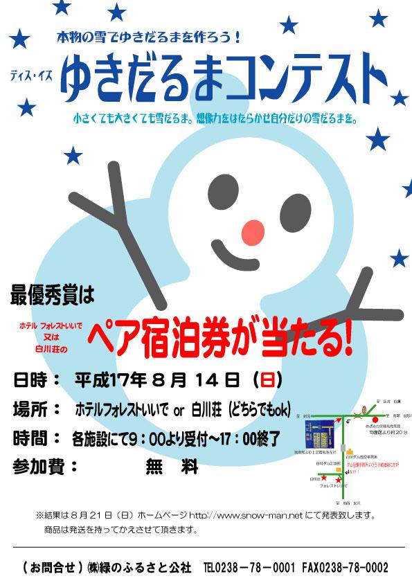 お盆の14日、白川荘・ホテルフォレストいいで2箇所にて【ゆきだるまコンテスト】を行います。