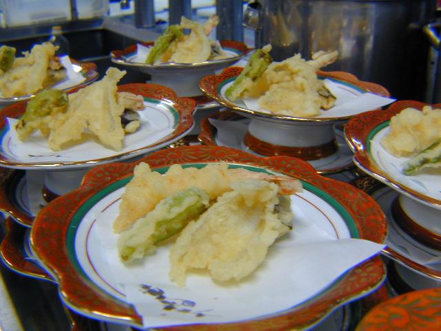 ズラリ並んだ揚げたててんぷら群。これからお客様の口に入ります。