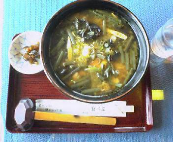 久々の『どぶろくラーメン』だ。数種類の山菜がたーっぷりとのっている。なにしろ今年は暑い夏だったから冷たいものばかり食べていた。ふきでてくる汗が、かなりのカロリー消費を思わせ、ダイエット効果の期待を持たせてくれます