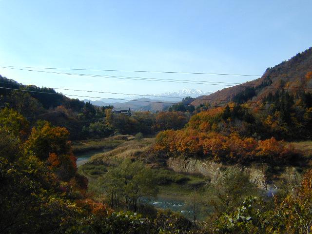 紅葉と雪山