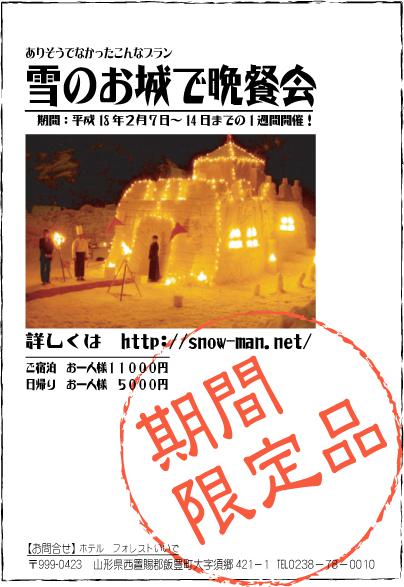 ホテルフォレストいいででは「雪のお城で晩餐会プラン」を開催。