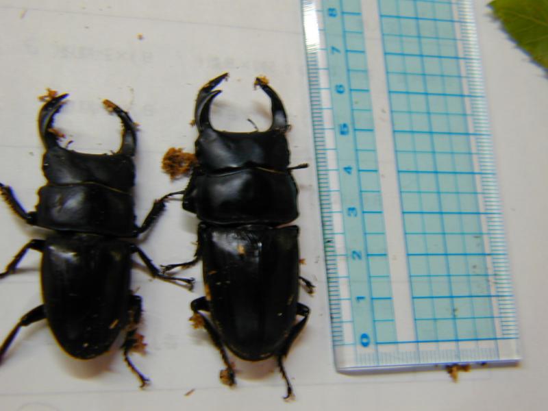 今日は非常に興奮ぎみです。宝くじが当たるぐらい興奮ぎみ。な、なんとオオクワガタを発見されたお客様がいましたー。し、しかも同時にオス2匹、メス1匹の計3匹同時!本当自分の事の様にうれしいーっ!写真だけ撮らせてもらいました。