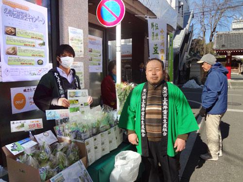 1月19日、東京都世田谷区の用賀にあるアンテナ「よーがや」で、雪菜・雪菜のふすべ漬・遠山かぶをPR販売しました。
