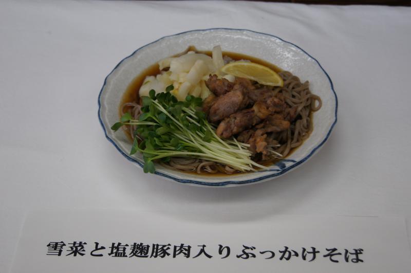 ▼雪菜と塩麹豚肉入りぶっかけそば