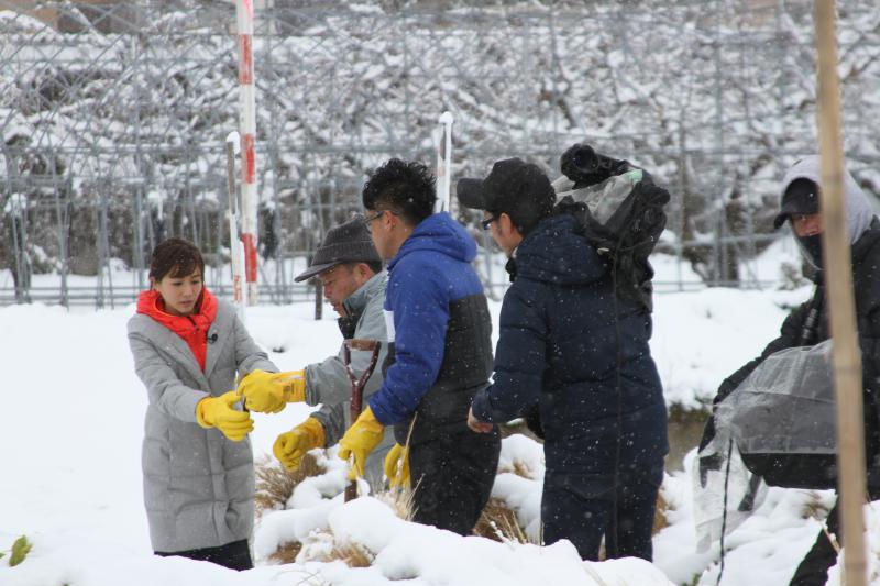 お笑い芸人の宮川大輔さんとゲストの田中みな実が米沢を訪れ、雪菜と山形の銘菓である乃し梅を堪能していかれました。