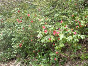 この付近の雪椿の群生は植物学会では密生していることで有名です。
