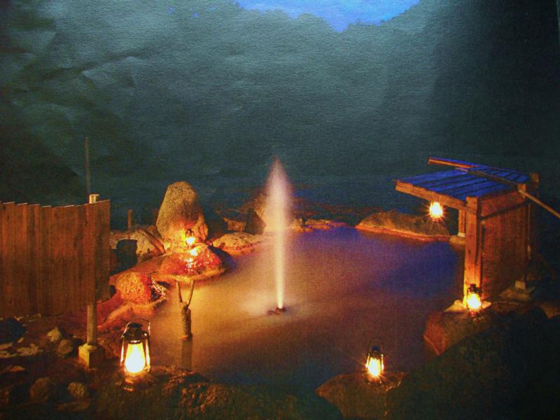 そのうちの一枚の画像(ランタンに灯された露天風呂)を配信いたします