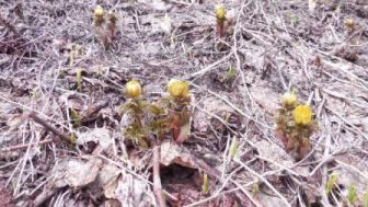 雪解け後一週間程で開花します。白川ダム近く集落の畔道ではいたる所に福寿草、かたくりの花、あづまイチゲの群生を目にすることが出来ますよ。