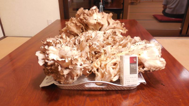 旅館の横の山で今朝(9/26)初舞茸が採れました。