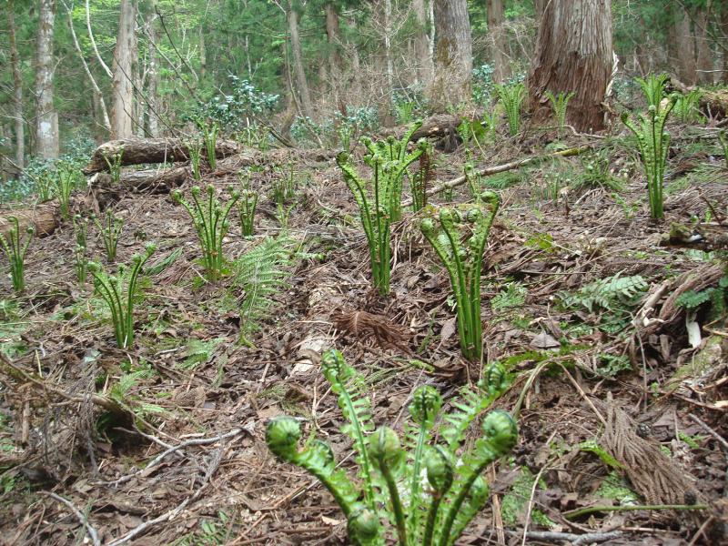 間欠泉の渓谷沿いは山菜の最盛期にはいります。